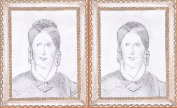 Die Kinder vergleichen Nettes Postkarte (links) mit dem Gemälde aus der Eingangshalle (rechts). Was fällt dir auf? Wie viele Fehler haben sich in dem Gemälde in der Eingangshalle versteckt?